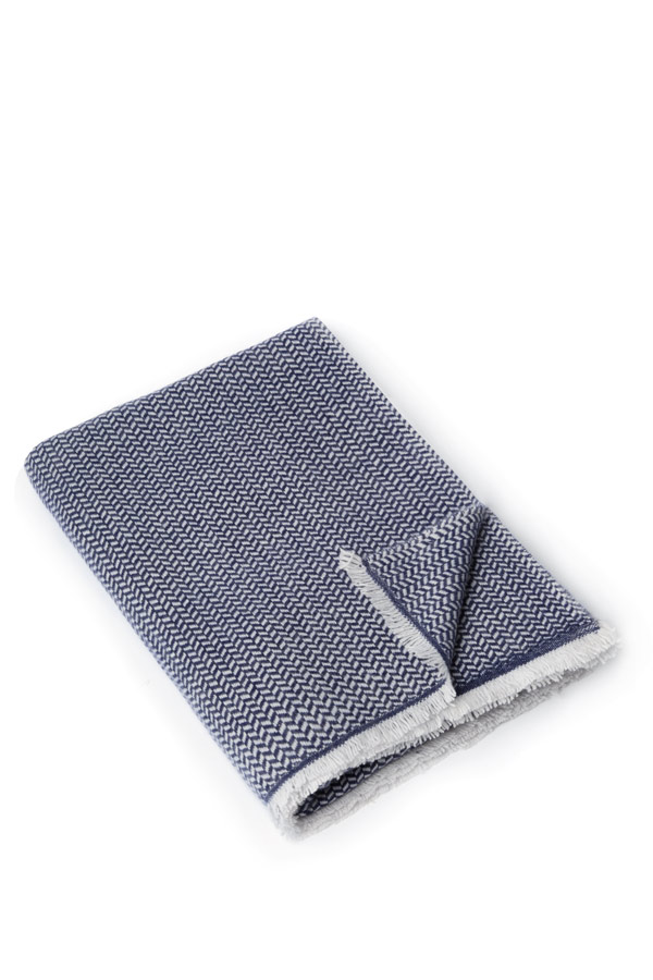 Cashmere Blend Blue Herringbone Throw 70% Fine Wool & 30% Cashmere