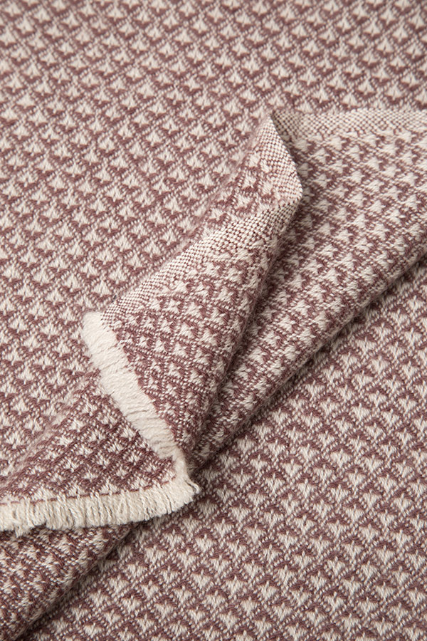 The Diamond throw in 70% fine wool and 30% pure cashmere, skilfully handwoven, comes in a two-toned colourway of mocha and antique white with fringed cream edges. The intricate diamond design makes it versatile for draping over furniture in a city apartment or a bedroom throw in a country hideaway. This piece is ultra-soft and the epitome of timeless luxury with an autumnal colour palette inspired by the landscapes in the Himalayas. Each piece takes our master weavers three months to hand create and using the softest cashmere and fine wool from the Changra mountain goat. The cashmere is dyed using Swiss eco-friendly colouring agents and dried in the sunshine for ultimate softness.