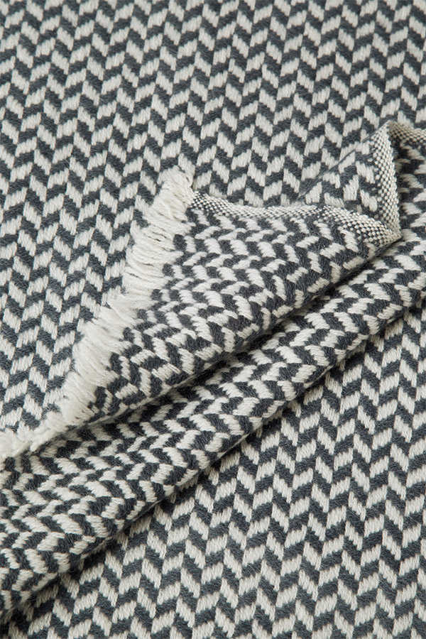 The Herringbone throw in 100% pure cashmere, skillfully handwoven, comes in a two-toned colourway of charcoal grey & off white with fringed edges making it versatile for draping over furniture in the living room or as a bedroom throw. This piece is sumptuously soft and perfect for wrapping up on lazy days. Inspired by the ever-changing elements of the Himalayan landscapes, each piece takes our master weavers three months to hand create using the highest quality cashmere from the Changra mountain goat. The cashmere is dyed using Swiss eco-friendly colouring agents and dried in the sunshine for ultimate softness.